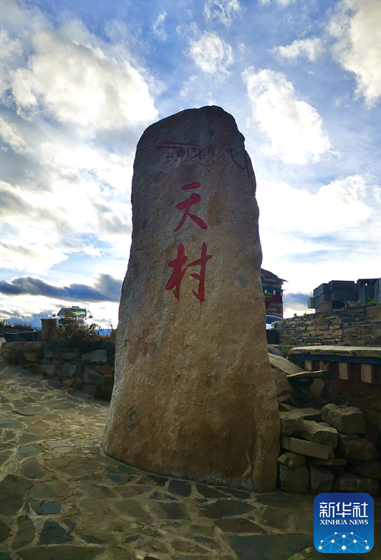 這是四川鄉(xiāng)城縣水洼鄉(xiāng)那拉崗村新立的“天村”碑。新華社記者惠小勇 攝