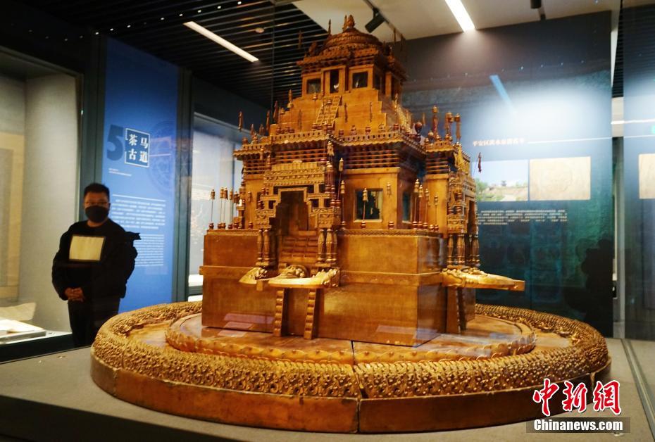 11月29日,位于青海省西寧市的青海省博物館展出木雕壇城。當日,青海省博物館經(jīng)一年半升級改造后開館并舉辦“1+3”主題展覽,160件藏品首次亮相。該展覽以青海歷史文物為主,青海非物質文化遺產(chǎn)、考古成果、百年革命文物為輔,多角度展現(xiàn)地域歷史及民族文化。據(jù)了解,升級后的博物館上展文物1331件(套)/2405件,其中一級文物191件,珍貴文物248件(套),上展文物體量為青藏高原最大。 中新社記者 馬銘言 攝