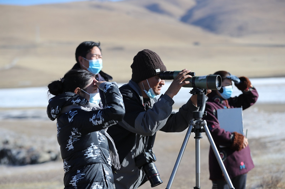 尕海保護(hù)站工作人員實(shí)地開(kāi)展鳥(niǎo)類(lèi)監(jiān)測(cè)調(diào)查。