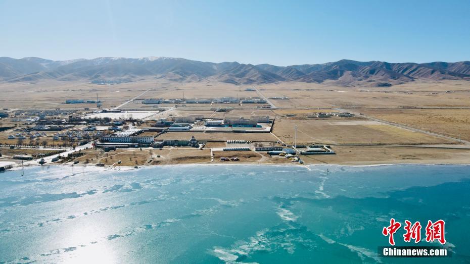 12月21日,航拍冬日青海湖。冬日青海湖周圍的積雪將湛藍(lán)的湖面包裹起來,不斷上凍的湖面猶如一面鏡子。(無人機(jī)照片) 中新社記者 李江寧 攝