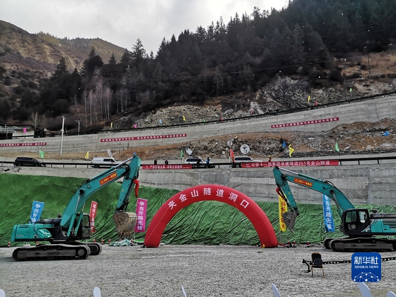 圖為國道351線夾金山隧道開工現(xiàn)場。新華社記者胡旭攝