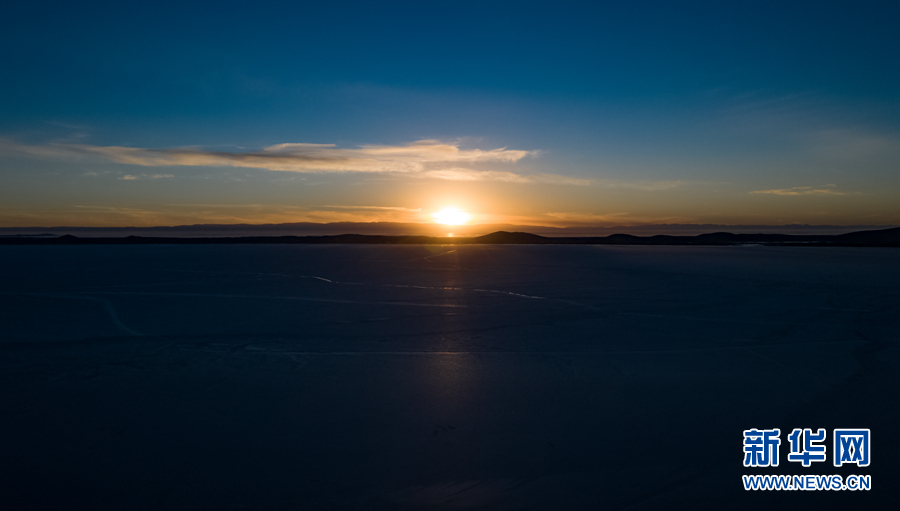 陽(yáng)光灑在冰封的湖面上。新華網(wǎng) 宋忠勇 攝