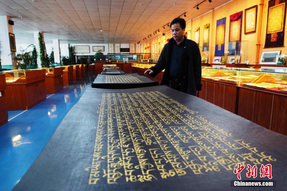 1月18日,青海省黃南藏族自治州尖扎縣非物質(zhì)文化遺產(chǎn)綜合傳習(xí)中心負(fù)責(zé)人才讓多杰介紹即將出售的經(jīng)書(shū)。該中心現(xiàn)有50名學(xué)員學(xué)習(xí)藏文書(shū)寫(xiě)、唐卡繪制、藏紙手工制作技藝等。他們?cè)趯W(xué)習(xí)、了解豐富多彩的藏族文化知識(shí)外,每年還可增收近5萬(wàn)元人民幣。中新社記者 馬銘言 攝