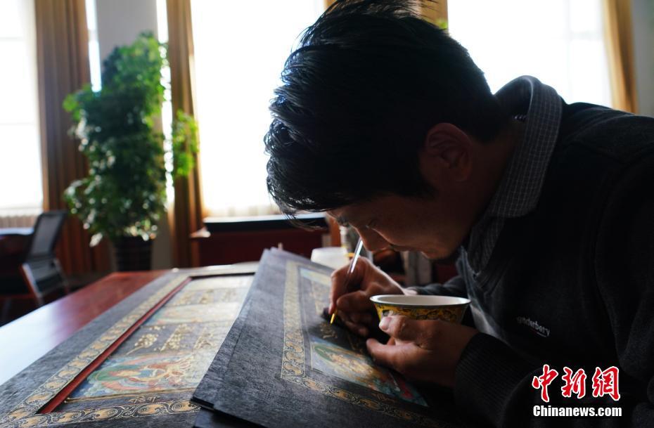 1月18日,青海省黃南藏族自治州尖扎縣非物質(zhì)文化遺產(chǎn)綜合傳習(xí)中心內(nèi),學(xué)員正在抄寫(xiě)經(jīng)文。該中心現(xiàn)有50名學(xué)員學(xué)習(xí)藏文書(shū)寫(xiě)、唐卡繪制、藏紙手工制作技藝等。他們?cè)趯W(xué)習(xí)、了解豐富多彩的藏族文化知識(shí)外,每年還可增收近5萬(wàn)元人民幣。中新社記者 馬銘言 攝