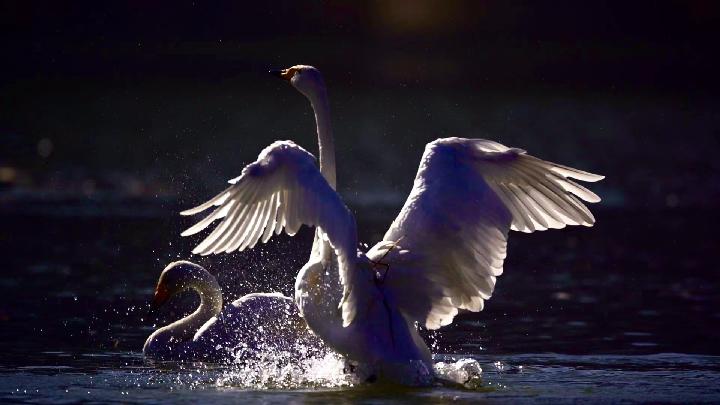 這是2021年11月23日在青海省海東市化隆回族自治縣境內(nèi)的黃河濕地拍攝的大天鵝。李玉峰供圖