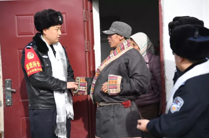2020年1月,鄭天海帶領(lǐng)民警到鐵路沿線牧民家中開(kāi)展幫扶慰問(wèn)(資料照片)。 新華社發(fā) 高慎陽(yáng) 攝
