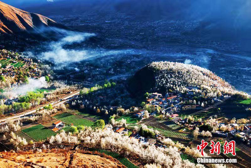 近日,四川省阿壩州金川縣萬畝梨花綻放,滿山遍野,雪白的梨花,隨風飄絮,藍天白云,花海飄香,令人陶醉,吸引眾多游客前來游覽、拍照。[詳細] -