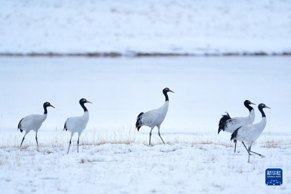 2021年10月21日在三江源國家公園黃河源園區(qū)內(nèi)拍攝的黑頸鶴。新華社記者 張龍 攝