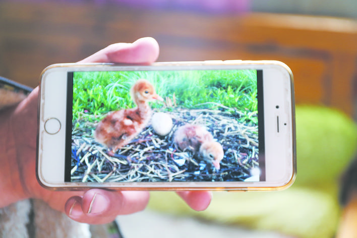 手機拍攝的黑頸鶴雛鳥