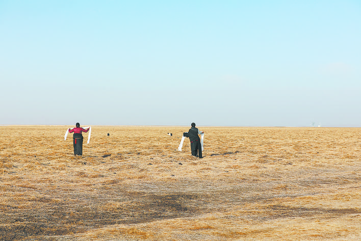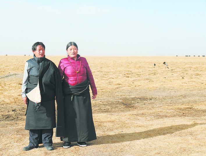 年復一年,如科每天帶上工作證、望遠鏡、茶水和干饃饃,從他居住的觀測站出發(fā),騎著摩托車巡護濕地;他的妻子沿著湖泊撿拾垃圾,守護著黑頸鶴的棲居環(huán)境,守護著野生動物的美好家園。
