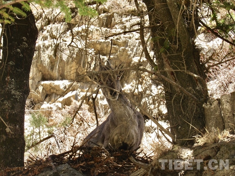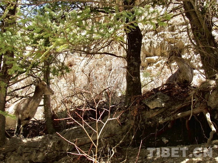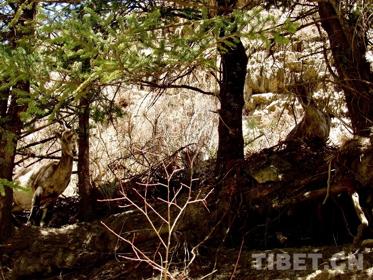 中國西藏網(wǎng)訊 4月9日上午,四川省甘孜藏族自治州新龍縣公安局政工民警前往沙堆鄉(xiāng)途中,偶遇一群悠閑自得的國家二級保護動物巖羊。