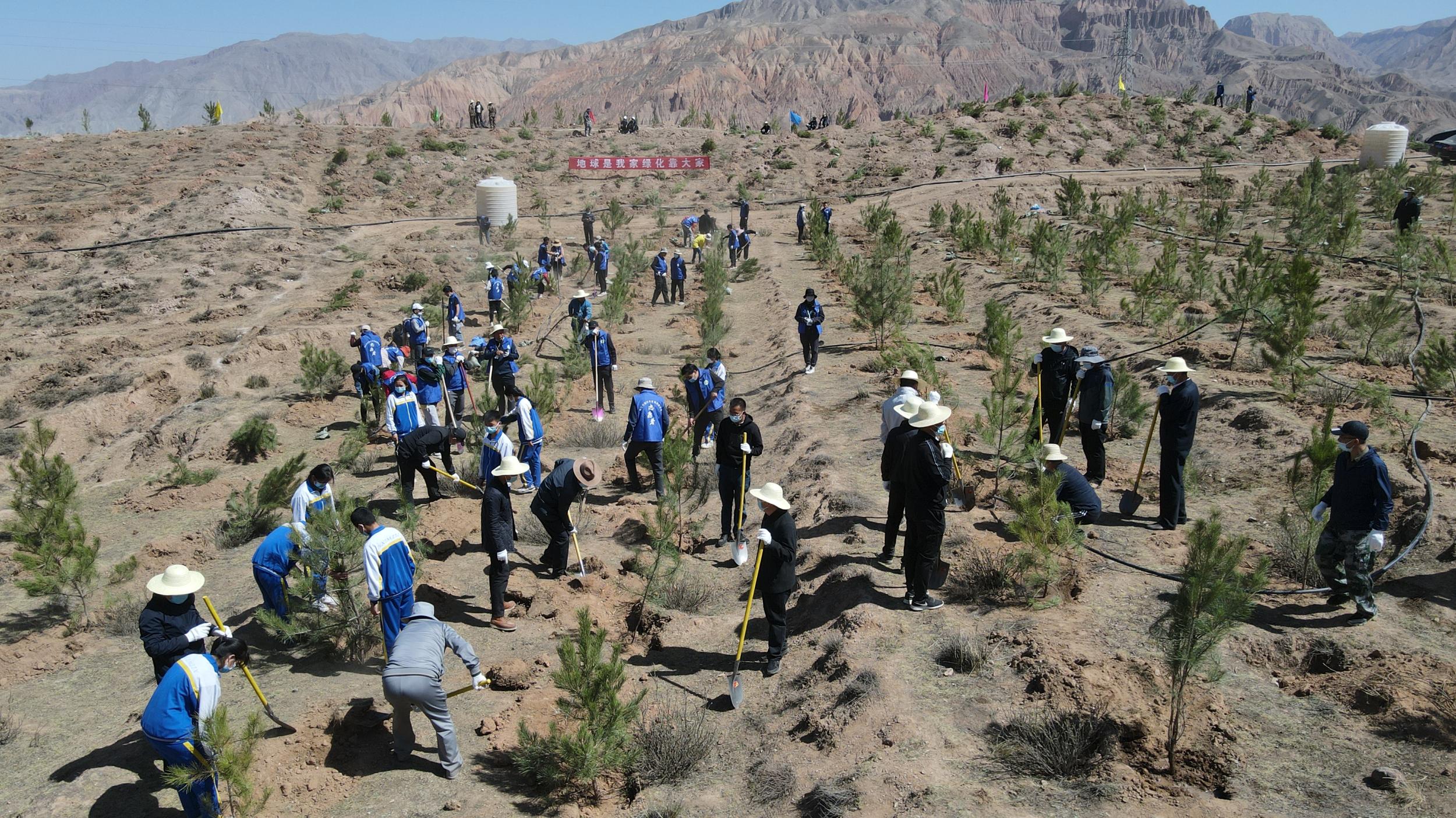 植樹現(xiàn)場,“播撒一顆種子 收獲一片綠色”“綠水青山就是金山銀山”等橫幅隨處可見。黃南州四大班子成員與機(jī)關(guān)干部一起揮動鐵鍬,挖坑、抬樹、扶苗、培土、踩實(shí)、澆水……每一道工序都做得十分認(rèn)真細(xì)致,掀起了春季綠化造林的高潮。