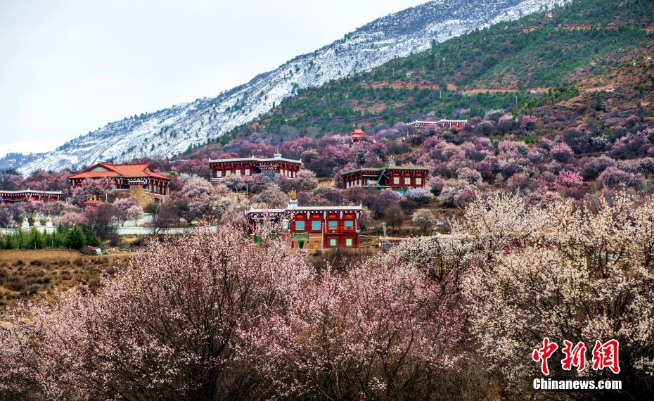 4月,艷陽下,四川省甘孜州道孚縣麻孜鄉(xiāng),一簇簇粉紅色的杏花綻放,將高原藏家村寨裝點一新,繁花似錦,一派生機勃勃的景象。何行銘 攝