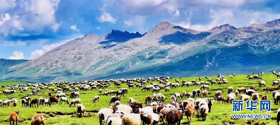 牛羊如珍珠般散落在共和草原上。海南州農牧局供圖