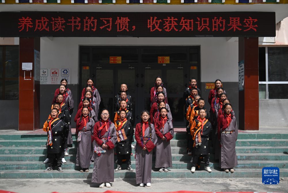 4月22日,青海省玉樹(shù)藏族自治州曲麻萊縣巴干鄉(xiāng)寄宿制小學(xué)的學(xué)生在學(xué)校組織的“世界讀書日”活動(dòng)中誦讀經(jīng)典。新華社記者 張龍 攝