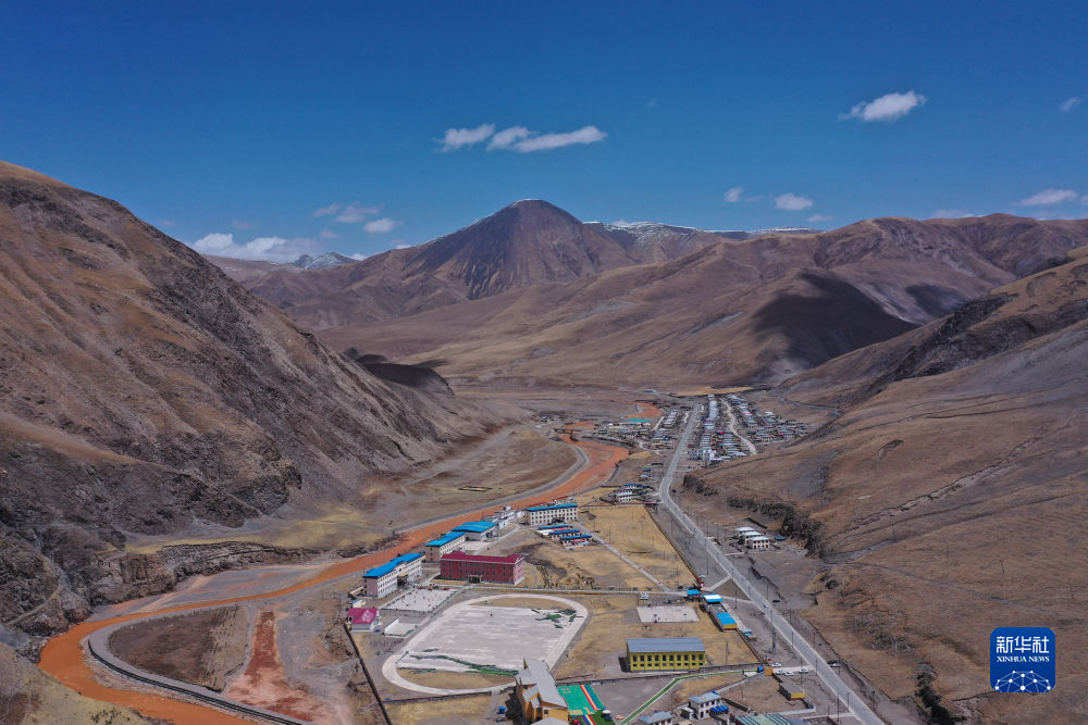 這是4月22日在青海省玉樹(shù)藏族自治州曲麻萊縣拍攝的巴干鄉(xiāng)寄宿制小學(xué)(無(wú)人機(jī)照片)。新華社記者 張龍 攝