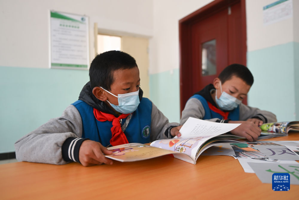4月22日,青海省玉樹(shù)藏族自治州曲麻萊縣巴干鄉(xiāng)寄宿制小學(xué)的學(xué)生在圖書室內(nèi)閱讀。新華社記者 張龍 攝