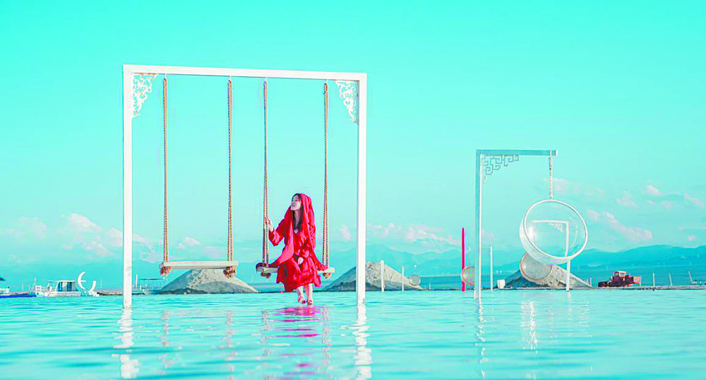 發(fā)表于網(wǎng)絡(luò)上的一組照片:平靜的湖面,清晰倒映著藍(lán)天、白云、山巒,還有擺出各種造型的人影;而夜景,浩瀚的銀河下,星空與湖面融為一色,夢幻而迷離。照片先是在朋友圈轉(zhuǎn)發(fā),繼而在各大平臺流傳,“流量”迅速集聚,讓茶卡鹽湖從一個制鹽企業(yè)“爆紅”成為熱門旅游景點,“天空之鏡”蜚聲國內(nèi)外。