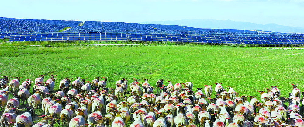 水光互補(bǔ)光伏電站的光伏羊。國(guó)家電投集團(tuán)黃河上游水電開發(fā)有限責(zé)任公司供圖