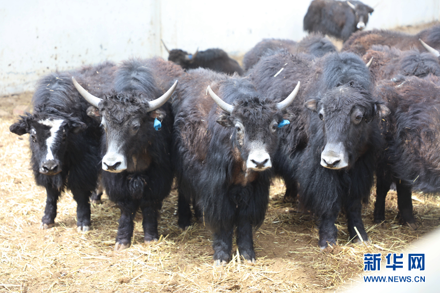 在天峻縣陽康鄉(xiāng)牦牛核心群培育基地內(nèi),工作人員在給牦牛投放飼草。新華網(wǎng) 吳婷婷 攝