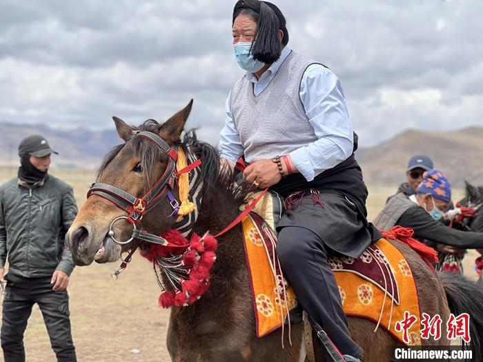 4月27日,才哇(左)在青海玉樹巴塘草原上與好友聊天。 中新社記者 李江寧 攝