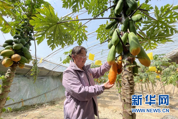 (資料圖)農(nóng)戶查看特色種植水果的長勢(shì)。新華網(wǎng)發(fā)
