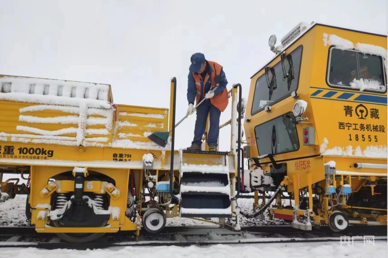 昆侖山上,氣溫驟降,多處施工現(xiàn)場被大雪覆蓋,一片白雪皚皚。為確保施工順利進行,近日,西寧工務(wù)機械段維修三車間的職工們開啟了對青藏鐵路格拉線望昆——昆侖山區(qū)間大機搗固施工作業(yè)。西寧工務(wù)機械段維修三車間主任王海峰在施工作業(yè)前,帶領(lǐng)車間職工清理積雪,同時對低溫狀態(tài)易發(fā)生故障的作業(yè)裝置進行針對性保養(yǎng)?!白⒁饽_下積雪濕滑,扶穩(wěn)抓牢,保證自身人身安全?!避囬g副主任張小波提醒說。