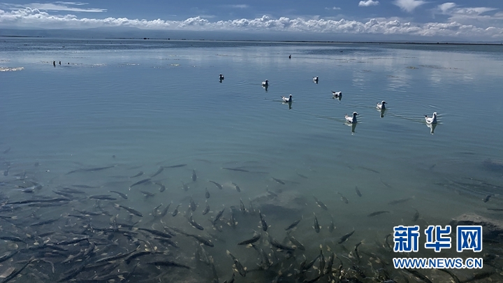 魚鳥(niǎo)共生的青海湖。新華社記者 李琳海 攝