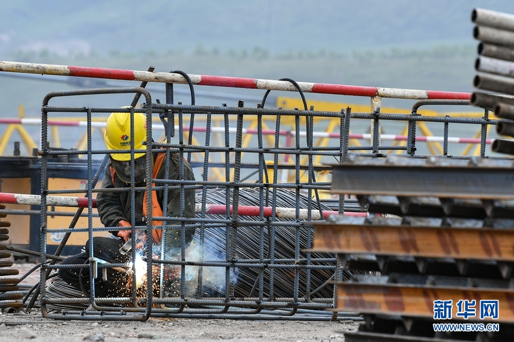 一名工人在施工現(xiàn)場(chǎng)焊接鋼筋。