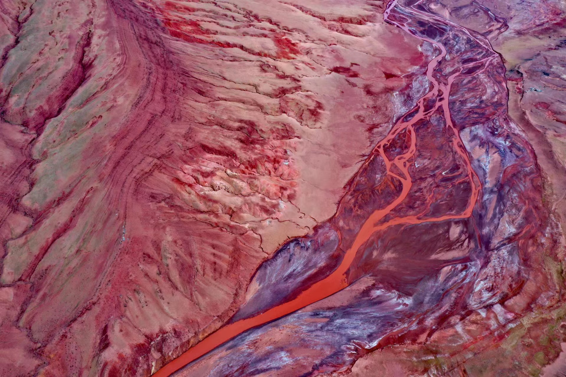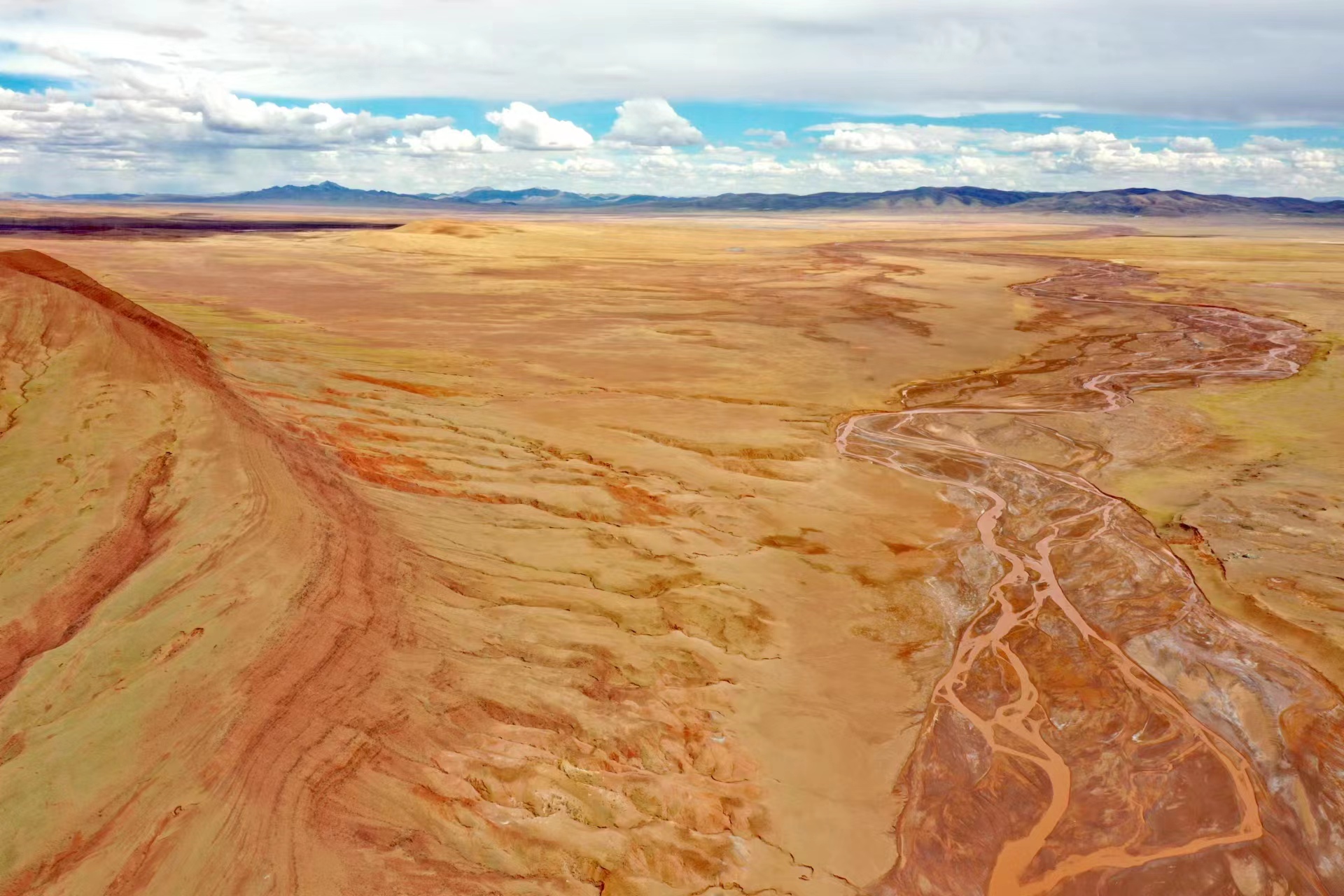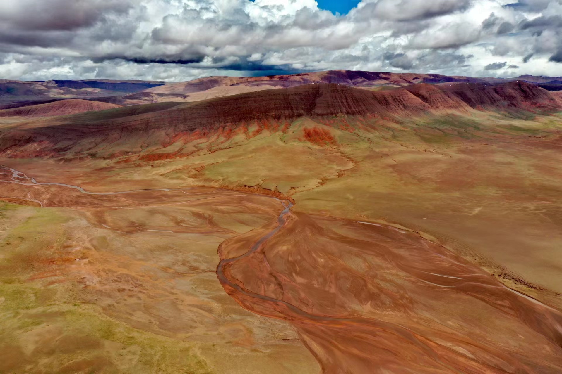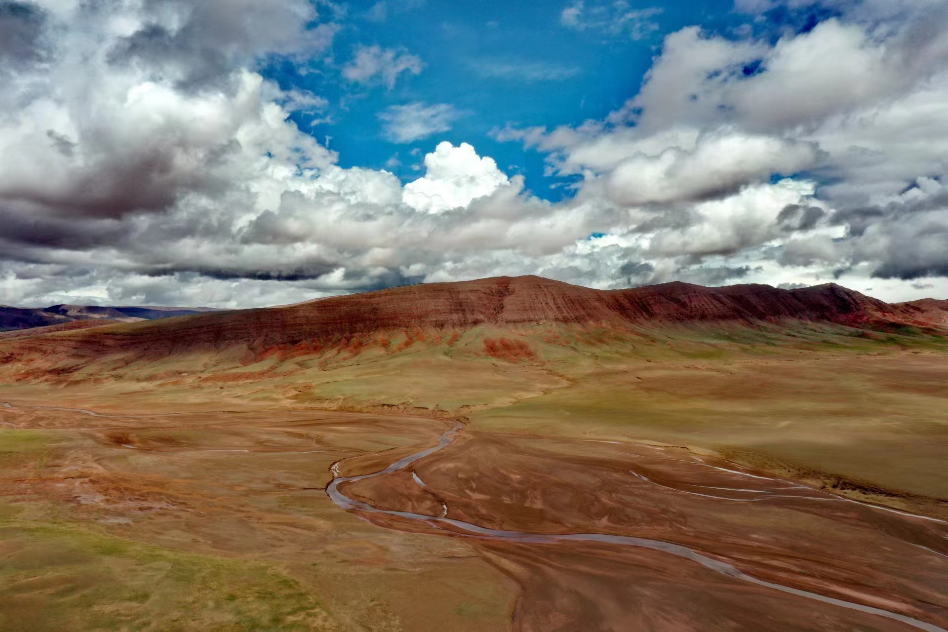 近日,中國地質(zhì)大學(xué)(武漢)長江科考先遣隊(duì)員張永一行進(jìn)行綜合科學(xué)考察時(shí),在青藏公路日阿尺曲一帶發(fā)現(xiàn)一條紅色山脈,是青藏高原109國道沿線一處壯觀的地質(zhì)遺跡。該山脈由晚白堊紀(jì)鈣質(zhì)膠結(jié)的粉、細(xì)砂巖與古近紀(jì)紫紅色、磚紅色復(fù)成份礫巖所組成,呈近東西走向,兩坡不對(duì)稱,南陡北緩,地層剖面出露清楚。