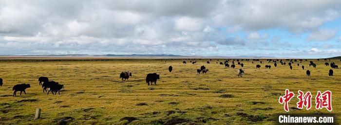 圖為牦牛在草原上悠閑自得。李江寧 攝