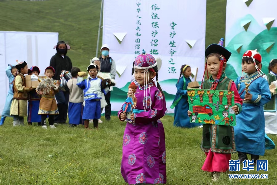 自2019年起,青海洮河源國(guó)家濕地公園每年夏季都會(huì)組織周邊幼兒園及中小學(xué)生開(kāi)展科普教育活動(dòng),向?qū)W生們講授濕地基礎(chǔ)知識(shí)、了解植物和野生動(dòng)物知識(shí)等,在體驗(yàn)自然奧秘和美麗的同時(shí),培養(yǎng)學(xué)生愛(ài)護(hù)環(huán)境、保護(hù)生態(tài)的意識(shí)。正值盛夏,這里天空湛藍(lán)、水草豐美??破招虇T多杰康卓在給來(lái)自河南縣賽龍鄉(xiāng)中心寄宿制完全小學(xué)五年級(jí)的學(xué)生們上生態(tài)課。 “濕地被譽(yù)為‘地球之腎’,是生物多樣性富集的生態(tài)系統(tǒng)和人類重要的生存環(huán)境之一,具有涵養(yǎng)水源、凈化水質(zhì)、維護(hù)生物多樣性等重要的生態(tài)功能?!倍嘟芸底拷o大家講授濕地環(huán)保知識(shí),也與學(xué)生們一同分享大家創(chuàng)作的環(huán)保主題作品。