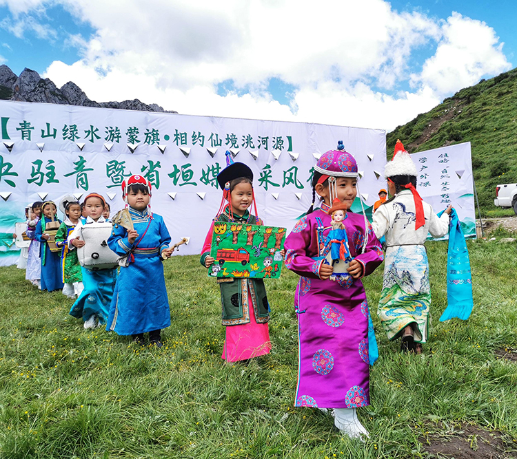 綠草如茵的大草原,成群的牛羊,清澈的洮河水,不時(shí)從山頭飄過的朵朵白云,在這樣一副如畫的景色里,河南縣中心幼兒園、賽龍鄉(xiāng)中心寄宿制完全小學(xué)的一堂戶外生態(tài)體驗(yàn)課正在這里進(jìn)行。