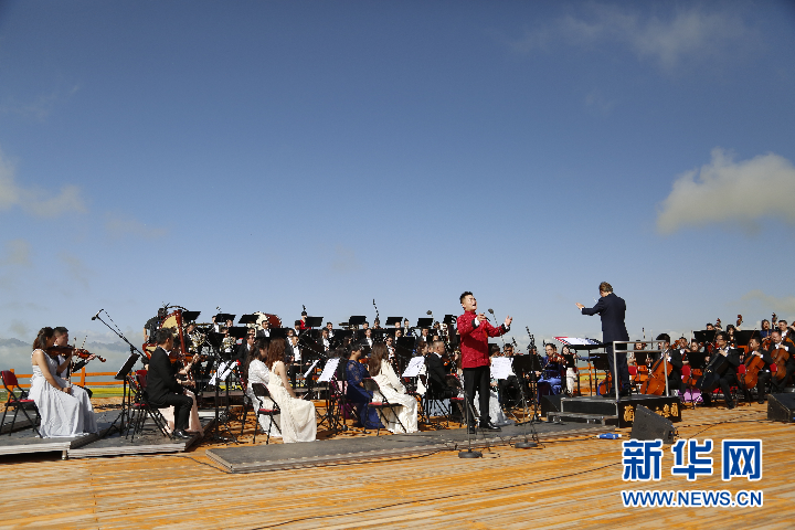 伴著祁連山下的微風(fēng),高原大地架起舞臺,綠色的群山和金黃的油菜花地為背景,觀眾徜徉在交響樂的柔波中……