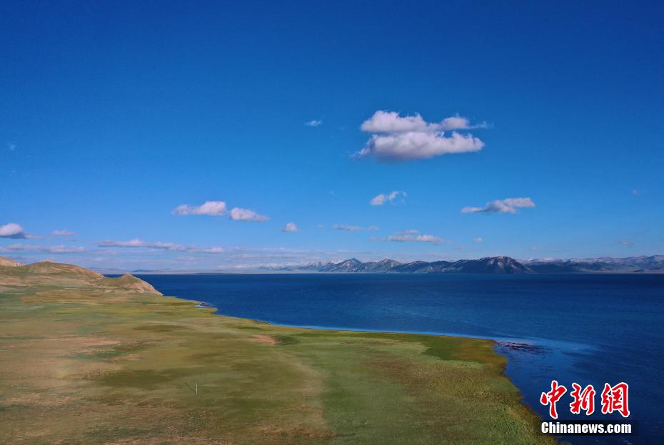 冬格措納湖位于青海省果洛藏族自治州瑪多縣,是一片地處海拔4100多米的淡水湖。夏日的冬格措納湖,湖水湛藍,宛如跌落群山之中的“藍寶石”。紅、黃、綠色的草灘與湖水相互映襯,美景如畫。圖為航拍冬格措納湖美景。 馬銘言 攝