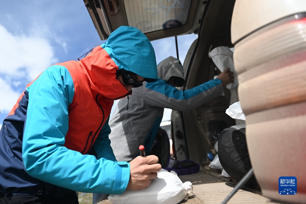 在長(zhǎng)江源地區(qū),張典在給采集到的樣品編號(hào)。新華社記者 張龍攝