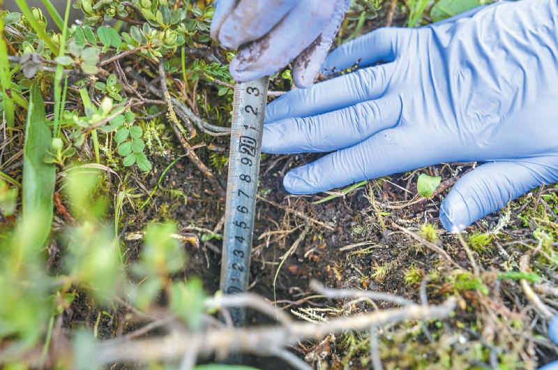 前期的研究表明,海拔越高,增溫速率越明顯。王濤站起身,山對面的雪山下,海拔4500米的地方,觀測站還布設了同樣的增溫設施?!拔覀兙褪且闱宄?,這種增溫會對土壤碳庫產(chǎn)生什么影響,影響的機制是什么?!?/p>