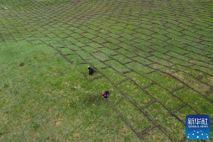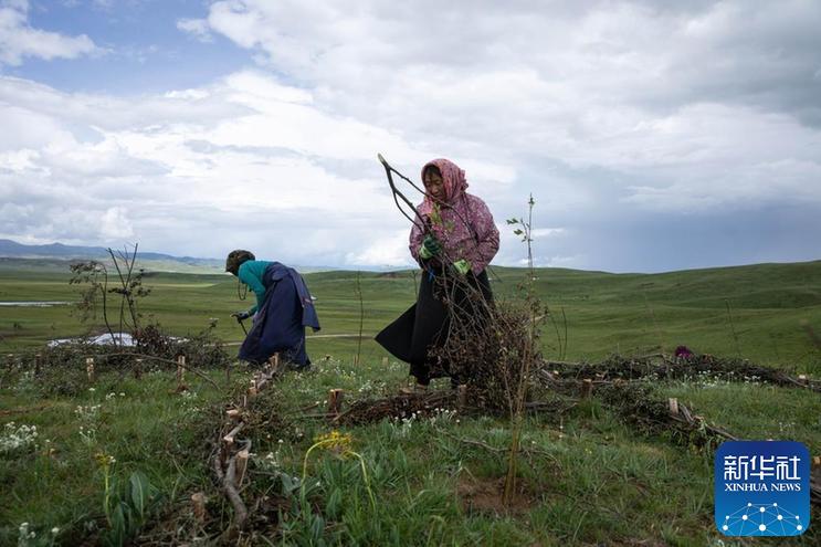 從五月底開始,四川省若爾蓋縣麥溪鄉(xiāng)黑河村村民在當(dāng)?shù)卣M織下,抓住雨水季節(jié)的有利時(shí)機(jī),在草場(chǎng)開展防沙治沙工作。