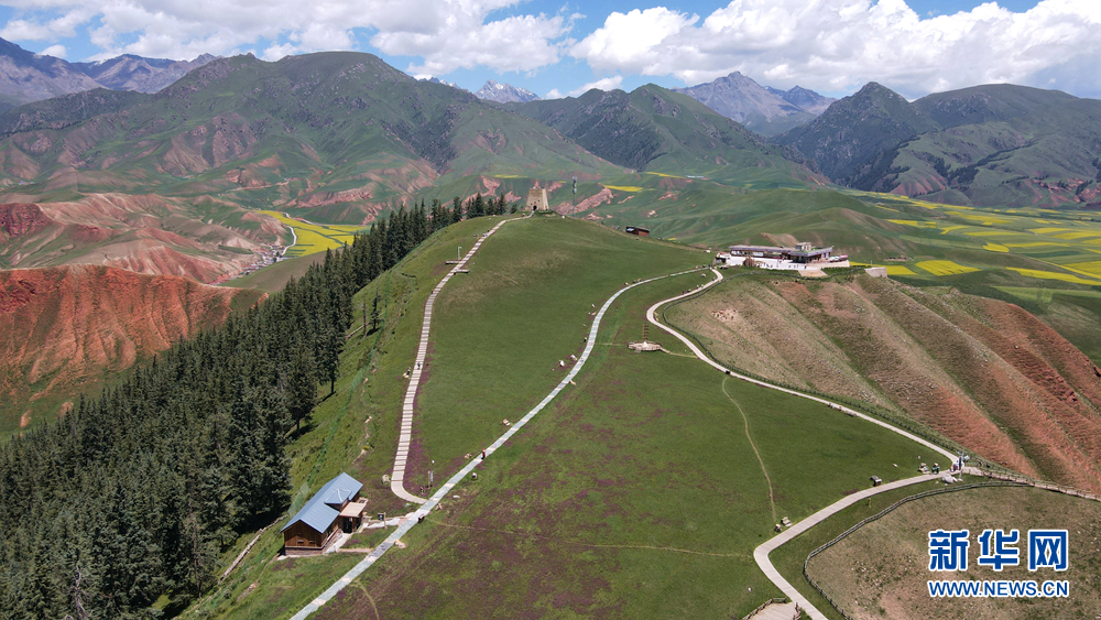 盛夏時節(jié),青海省海北藏族自治州祁連縣的卓爾山景區(qū)綠意盎然,風(fēng)景如畫。