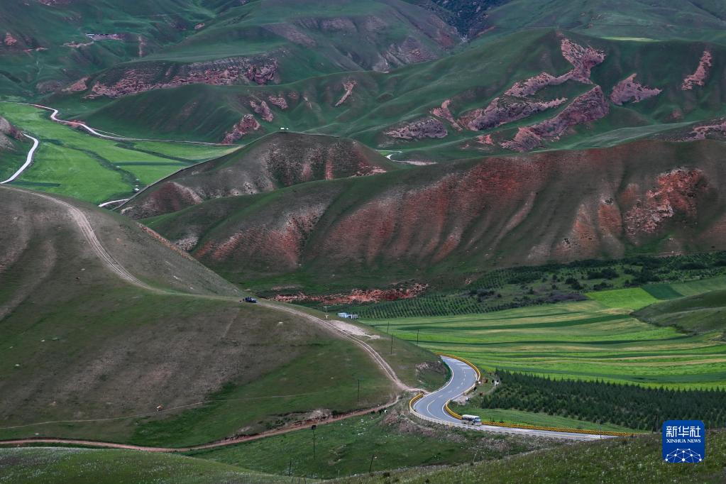 8月10日,觀光車行駛在青海省海北藏族自治州祁連縣境內(nèi)。新華社記者 張龍 攝