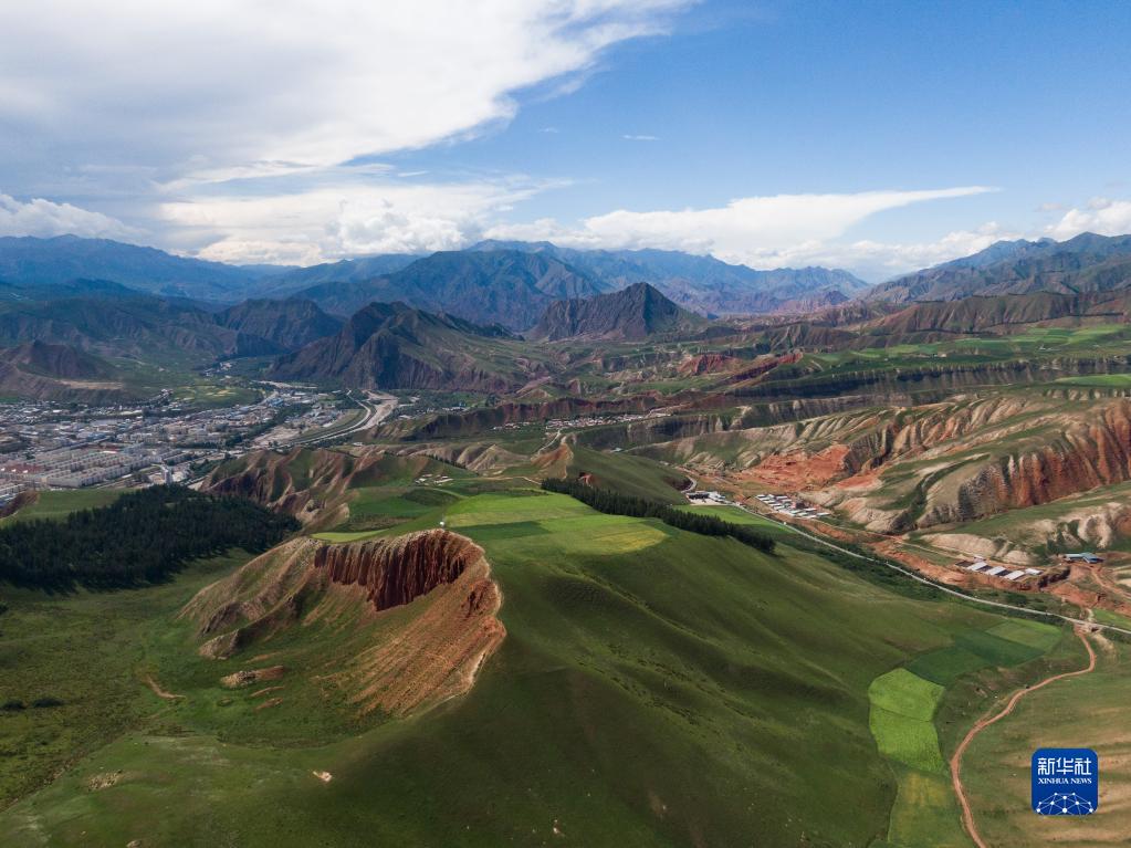 ??進(jìn)入8月,位于青海省海北藏族自治州的祁連縣氣候清爽宜人,一望無際的草原、繚繞的白云,呈現(xiàn)出大西北獨(dú)具特色的美景。新華社發(fā) 李雪 張龍 編制 ??