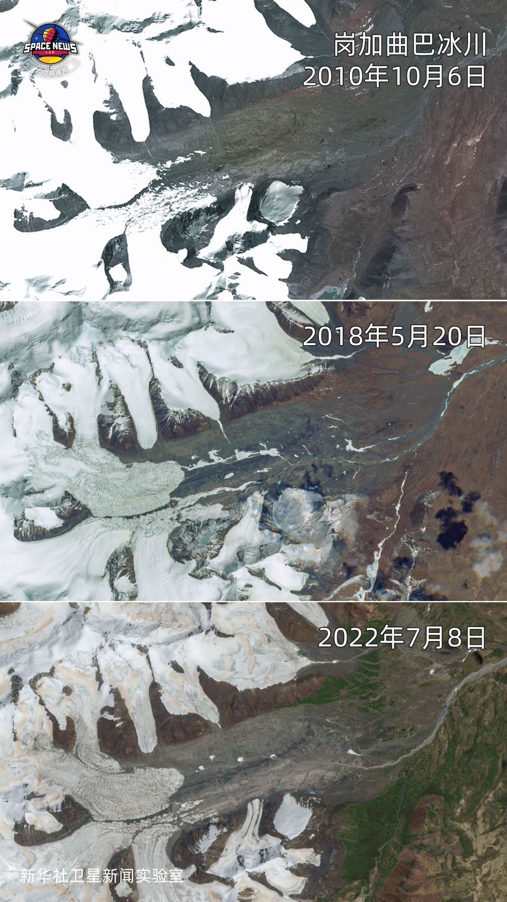 通過(guò)崗加曲巴衛(wèi)星遙感圖像可以看到,巨大冰川前沿形成一條條“冰舌”。冰川融水沿著河谷最終流入長(zhǎng)江源水系,奔流而下匯入滾滾長(zhǎng)江。