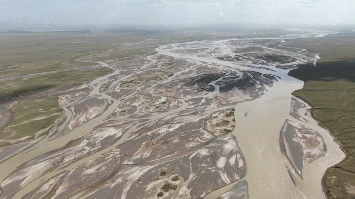 周銀軍說(shuō),在青藏高原上,江源河床下多是凍土,河水很難向下侵蝕。加上兩岸沒有山體形成自然約束,也不像平原地區(qū)修建堤防、護(hù)岸等水利工程,長(zhǎng)江源地區(qū)河流水量大、水流快時(shí),河道沖刷以橫向變形為主,因此河床呈現(xiàn)千變?nèi)f化狀態(tài)。