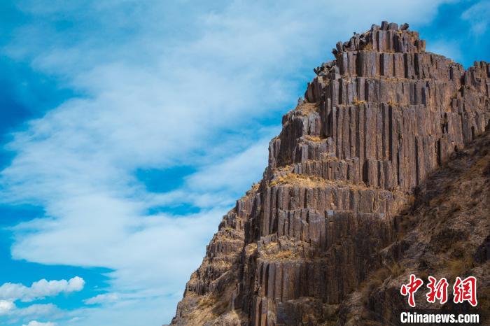青海發(fā)現(xiàn)距今2.2億年火山巖柱狀節(jié)理群 酷似“巨锏”立山巔