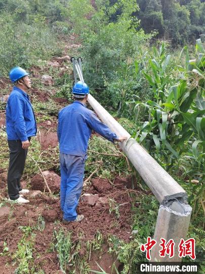 地震造成雅安漢源縣境內(nèi)宜東鎮(zhèn)三交鄉(xiāng)(與瀘定交界)部分電網(wǎng)設(shè)施受損。 李明 攝