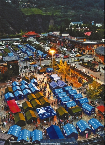 9月5日18時20分,天色漸暗,甘孜藏族自治州瀘定縣磨西鎮(zhèn)臨時安置點亮起了震后的第一盞燈。王明峰 湯衛(wèi) 攝影報道