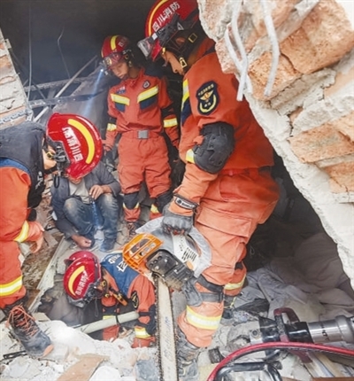 9月5日17時16分,海螺溝景區(qū)消防救援大隊對位于磨西鎮(zhèn)老街一酒店二樓的被困群眾展開營救。消防救援人員破拆加固建筑廢墟、安全評估現場環(huán)境,并對廢墟中的障礙物進行清理,經過緊張救援,被困群眾被成功救出。王明峰 劉國謙 攝影報道