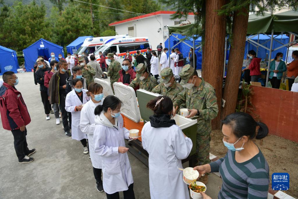 9月6日,西藏軍區(qū)川藏兵站部某大站救援隊(duì)抵達(dá)瀘定縣磨西鎮(zhèn),開設(shè)臨時(shí)熱食供應(yīng)站為救援人員和受災(zāi)群眾提供保障。新華社發(fā)(任云 攝)