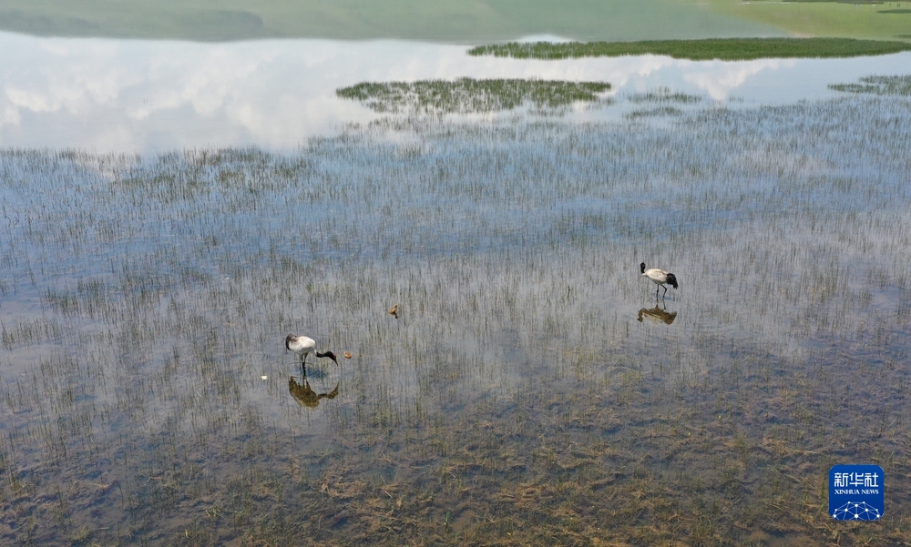 黑頸鶴群“落戶(hù)”祁連山木里濕地
