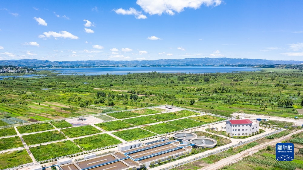這是貴州草海國(guó)家級(jí)自然保護(hù)區(qū)的萬(wàn)噸生活污水處理廠(2019年6月20日攝,無(wú)人機(jī)照片)。新華社記者 陶亮 攝